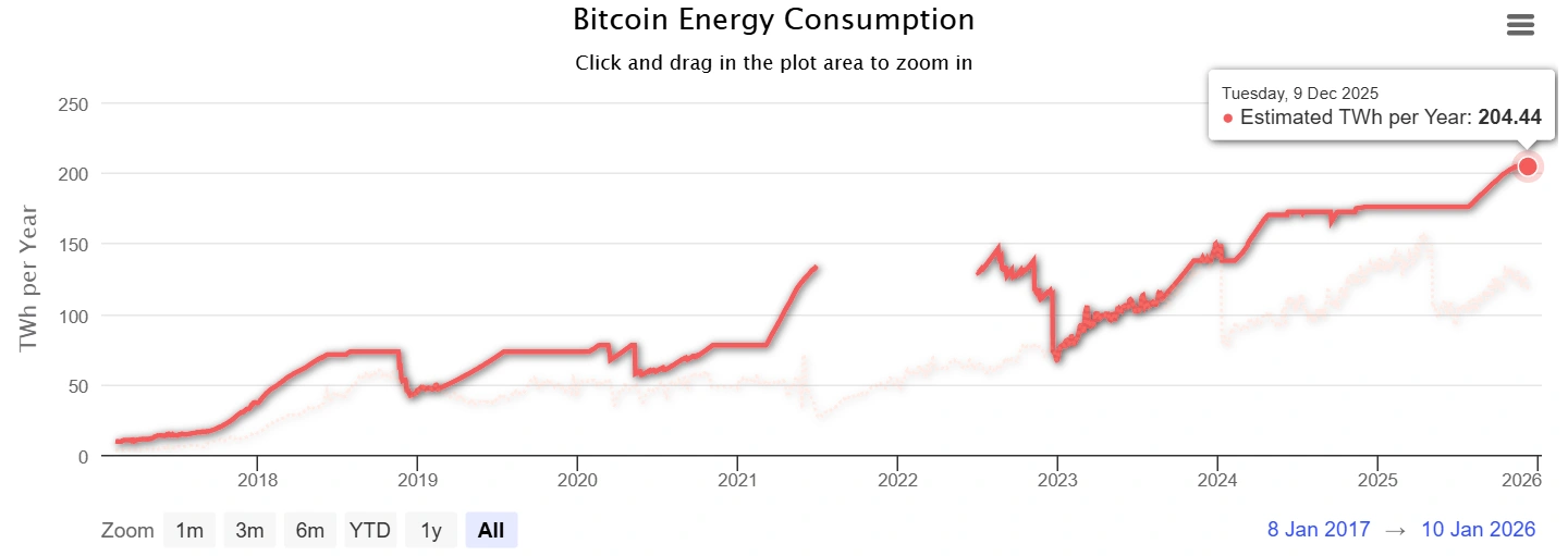 A jaki związek ma z tym bitcoin? Zużycie energii pozostaje jednym z najbardziej kontrowersyjnych aspektów bitcoina. Światowe zapotrzebowanie na energię związane z kopaniem bitcoina przekroczyło już 200 terawatogodzin rocznie. To więcej niż roczne zużycie całej Polski i około 0,8 procenta globalnej produkcji energii elektrycznej.