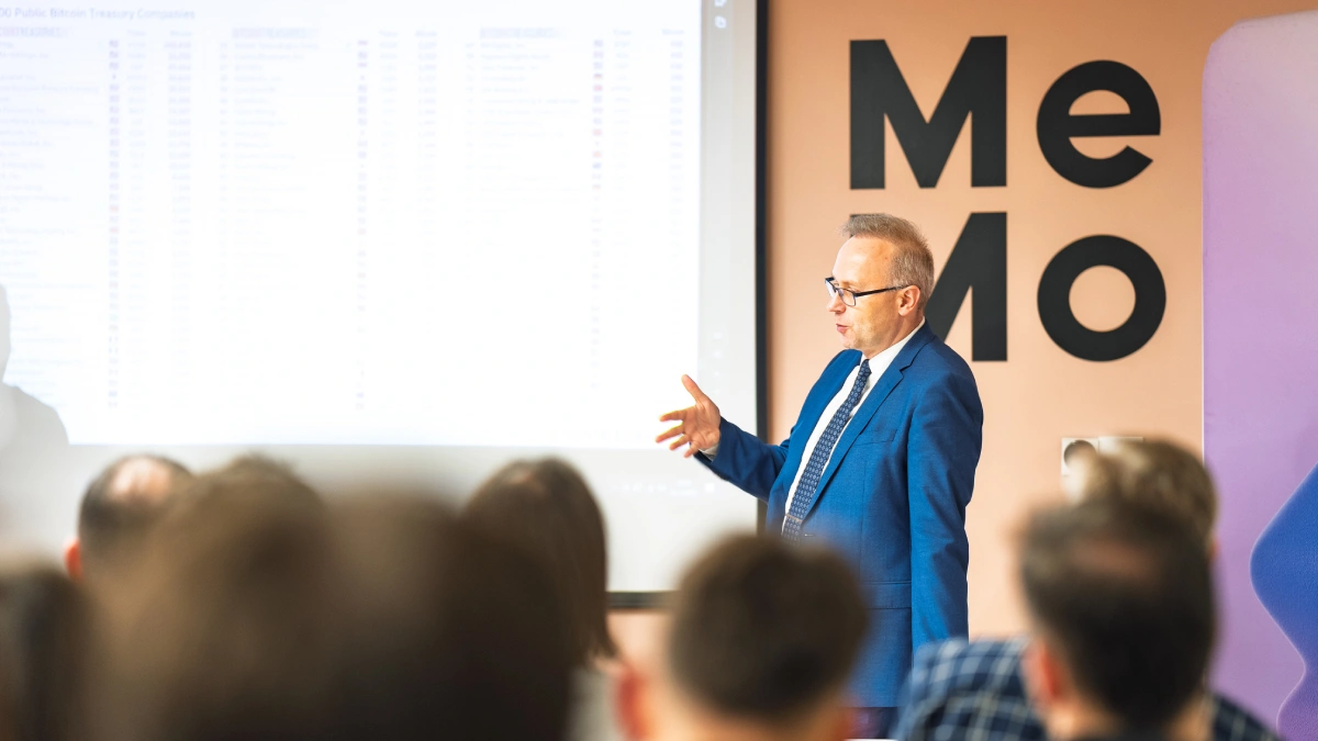 Spotkanie otworzyła merytoryczna prelekcja dr. hab. Krzysztofa Piecha, prof. Uczelni Łazarskiego, zatytułowana "Bitcoin jako 'cyfrowe złoto' oraz spółki typu bitcoin-treasury". Profesor Piech w przystępny sposób przybliżył historię pieniądza, mechanizmy inflacji oraz kluczowe cechy Bitcoina, takie jak ograniczona podaż i decentralizacja, które upodabniają go do złota. Uczestnicy dowiedzieli się również o rosnącym trendzie inwestowania w BTC przez spółki giełdowe i państwa, a także o związanych z tym szansach i ryzykach.