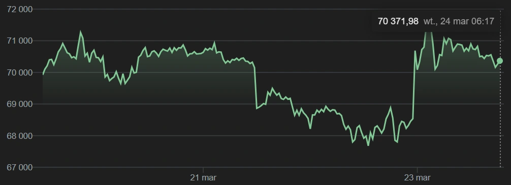 Na to wszystko nakłada się jeszcze ruch ze strony BlackRocka, który nie ma sobie równych jeśli pod uwagę weźmiemy wartość aktywów. 23 marca BlackRock przelał na Coinbase Prime 839 bitcoinów (wycenione na 57,4 miliona dolarów) oraz 14 802 ETH (30,3 miliona dolarów). Łącznie niemal 88 milionów dolarów w jednej transakcji.