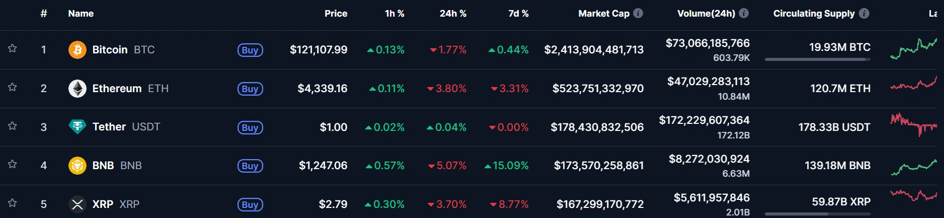 Z kapitalizacją rynkową sięgającą 178 miliardów dolarów, BNB wyprzedził we środę XRP o niemal 10 miliardów dolarów. Jednak we czwartek Tether odzyskał miejsce na podium:
